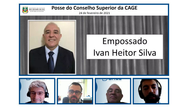 Foi empossado, na tarde desta quarta-feira (24/2), o novo membro indicado ao Conselho Superior da Contadoria e Auditoria-Geral do Estado (Cage), auditor-fiscal da Receita Estadual, Ivan Heitor Silva. O secretário da Fazenda, Marco Aurelio Cardoso, procedeu à posse em sessão solene e virtual do Colegiado, na presença do contador e auditor-geral do Estado e presidente do Conselho Superior, Rogerio da Silva Meira, que em seu discurso destacou a trajetória de 27 anos do fazendário que, nos últimos quatro anos, vem atuando como coordenador da Seccional da Cage junto à Secretaria da Fazenda.