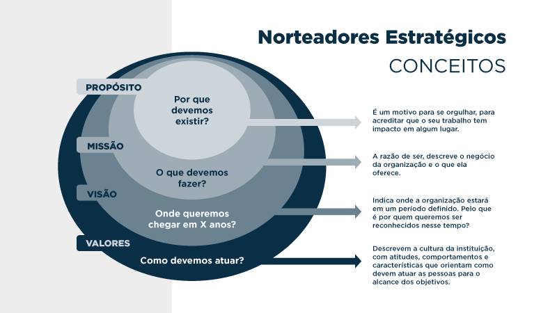 As orientações estratégicas são a tradução do posicionamento da Sefaz-RS, auxiliando na compreensão de onde e como se quer chegar. Elas norteiam o plano de trabalho e o processo decisório na instituição, sendo compostas por propósito, missão, visão, valores e objetivos estratégicos, que estão visualmente integrados no mapa estratégico da Secretaria.