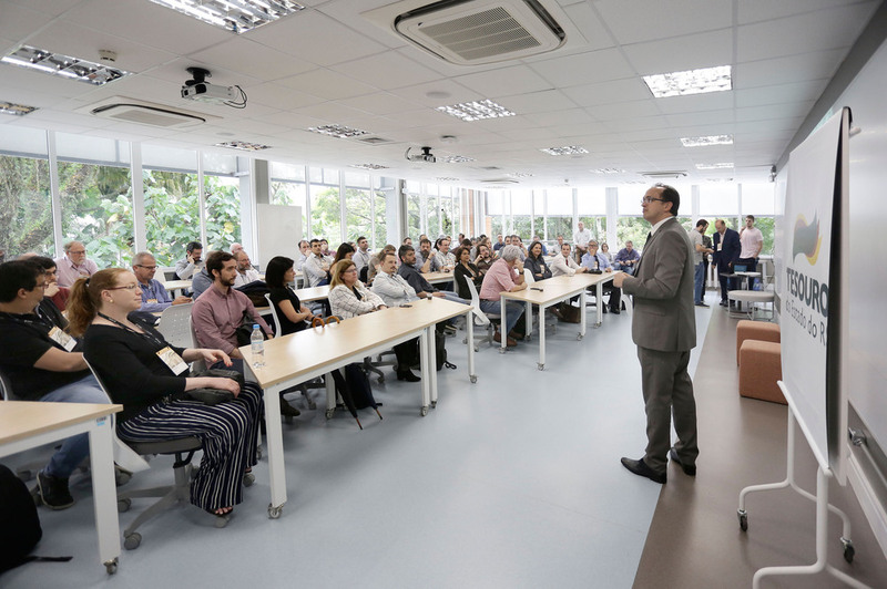 O Tesouro do Estado promoveu na tarde dessa quarta-feira (27), na Pontifícia Universidade Católica do Rio Grande do Sul (PUCRS), o workshop de estruturação de seu Programa de Inovação. O objetivo foi promover uma discussão colaborativa e transdisciplinar sobre ideias embrionárias para um conjunto de iniciativas que a Subsecretaria pretende lançar em 2020 com foco na reversão da crise financeira do Estado e na qualificação dos serviços prestados.
