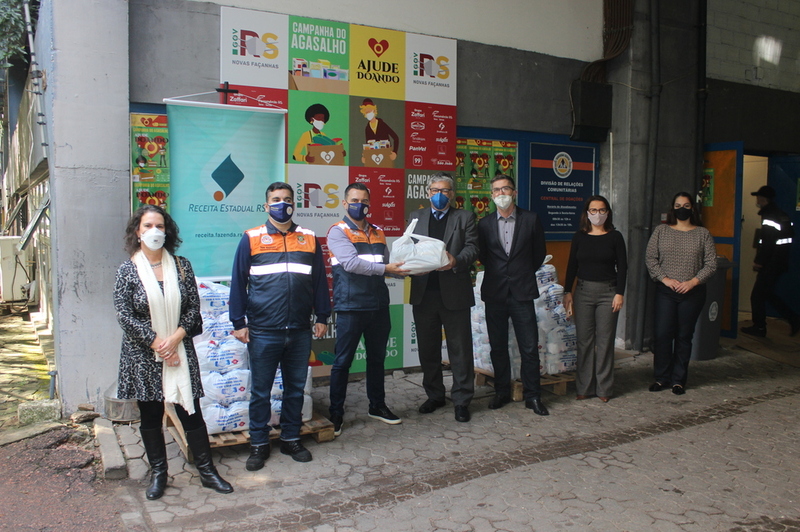 Para ajudar aqueles que mais precisam, inclusive em virtude da pandemia da Covid-19, a Receita Estadual (RE) entregou, nesta quarta-feira (9/6), as doações obtidas por meio da campanha de solidariedade “Muito Além da Receita”. Voltada ao público interno, a iniciativa arrecadou ao todo 332 cestas básicas que foram recebidas pela Central de Doações da Defesa Civil do RS e serão distribuídas a entidades e comunidades de diversos municípios gaúchos. O ato contou com a participação do subsecretário da RE, Ricardo Neves Pereira, do subsecretário adjunto da RE, Luis Fernando Crivelaro, do subchefe da Defesa Civil Estadual do RS, Coronel Rodrigo Dutra, e de organizadores da campanha.