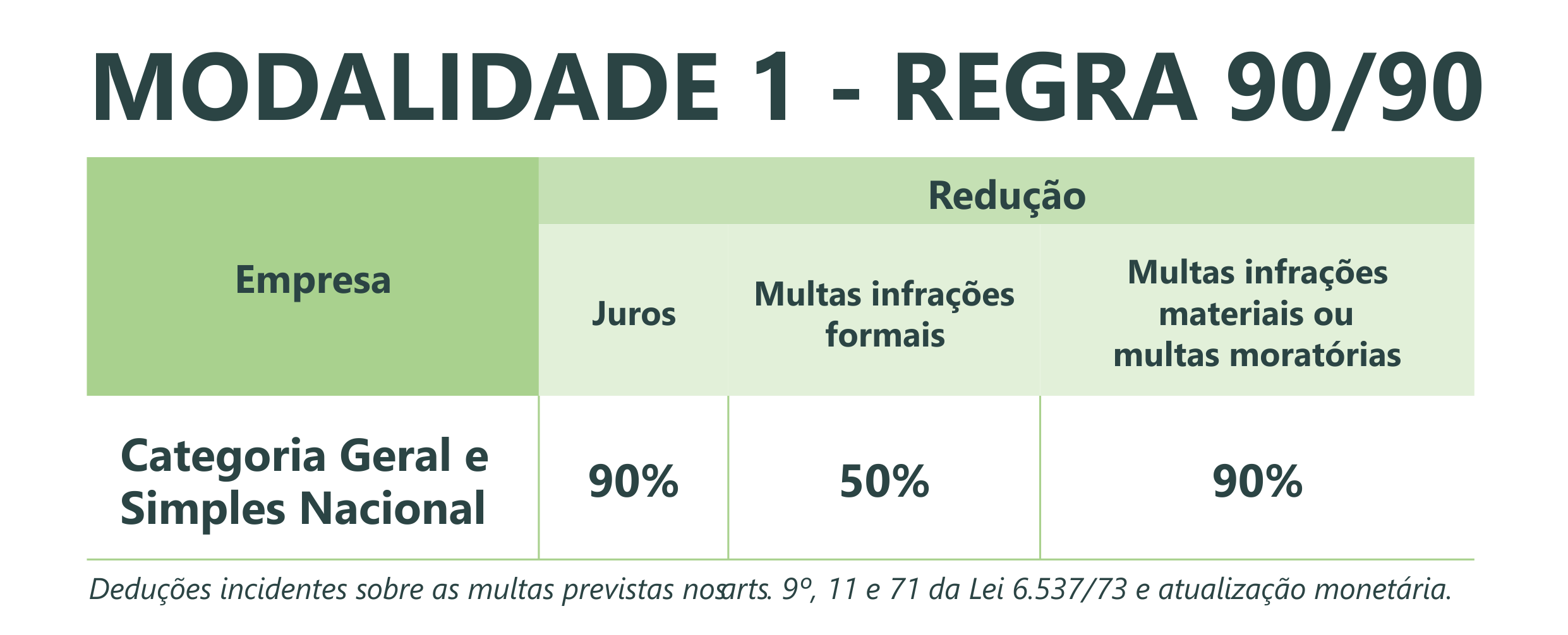 A modalidade garante 90% de desconto nos juros e nas multas devidos. Essa regra vale para contribuintes da Categoria Geral e optantes do Simples Nacional, sendo que o pagamento deve ser realizado até 13 de dezembro de 2019.